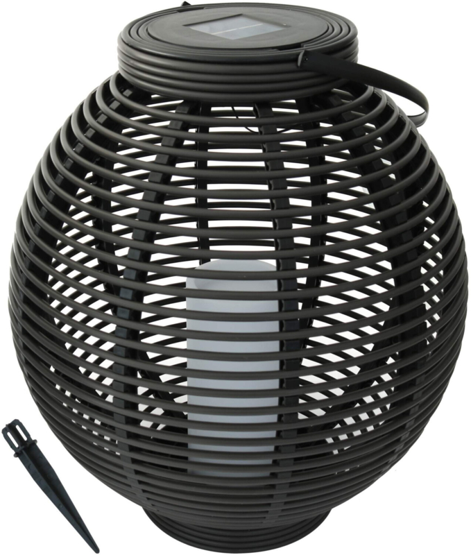 Grote Solarlantaarn in Rotanlook met LED-kaars Zwart Antraciet - H=45,5cm HH3010